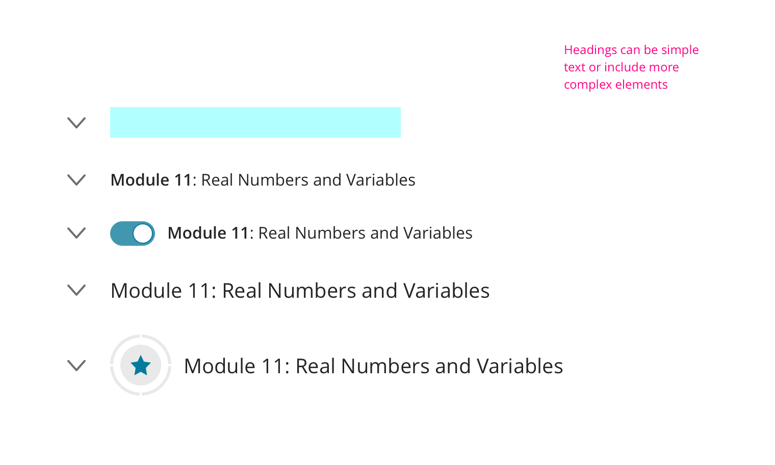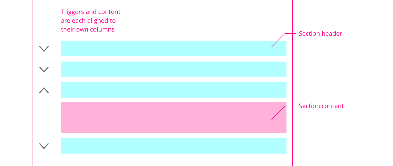 Triggers should always follow the pattern of a down pointing chevron for the closed state and an up pointing chevron for the open state. There are two specific styles that are commonly used, but the pattern can be adapted if needed by your specific use case.