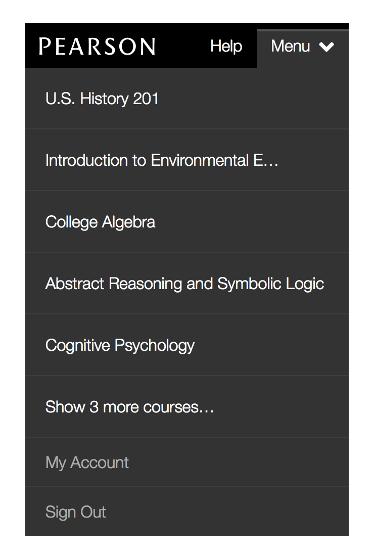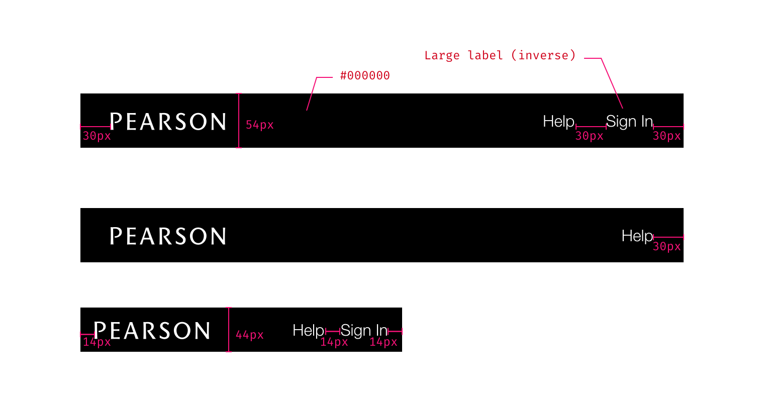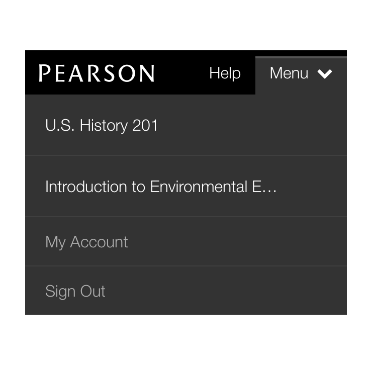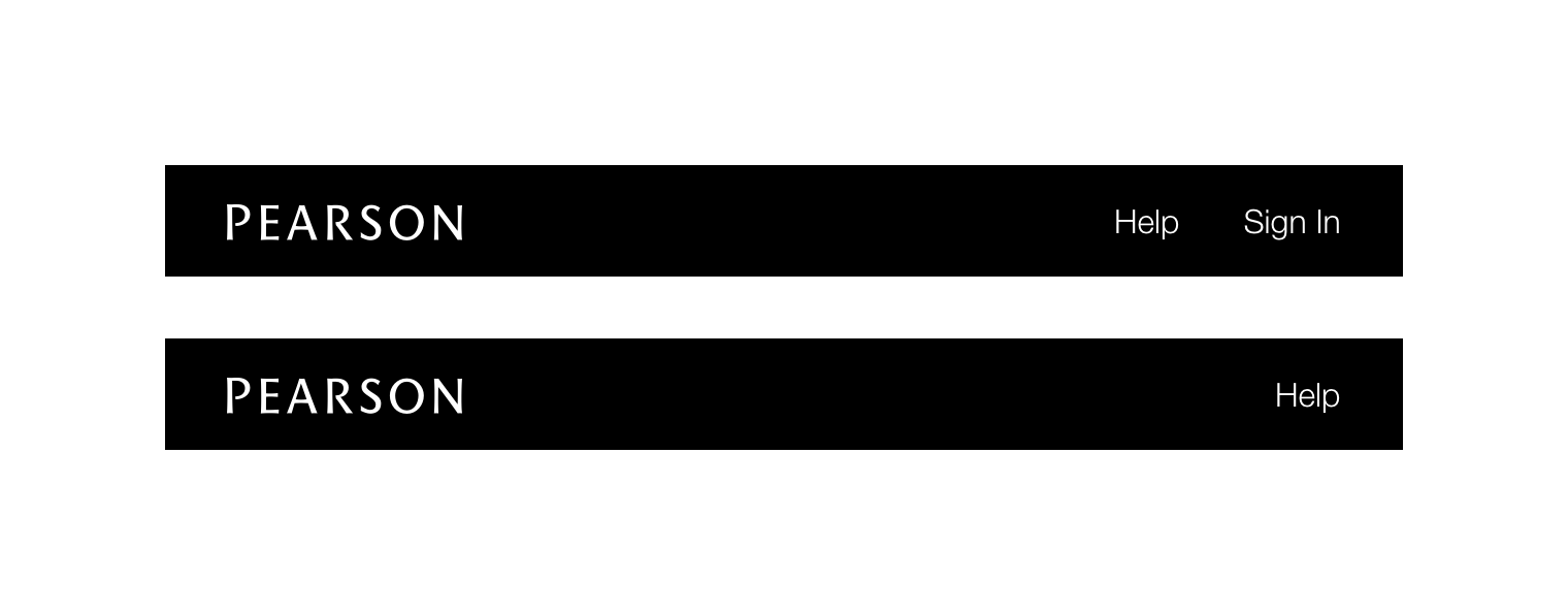 This is the simplest version of the header, just displaying the Pearson logo (with no link interaction), the help link, and (optionally) a Sign In link. The help link is designed to trigger the Contextual Help component.