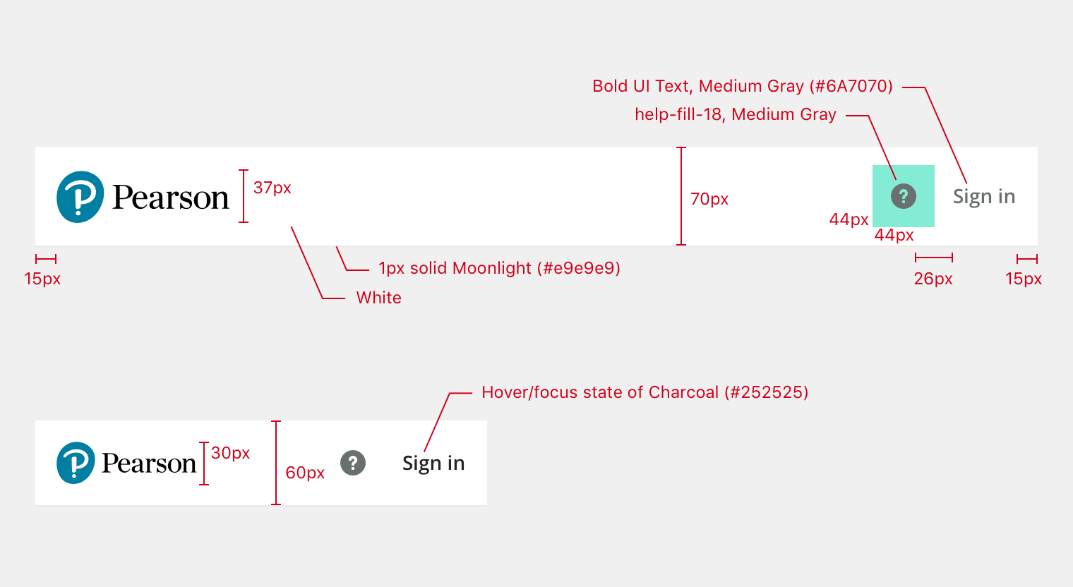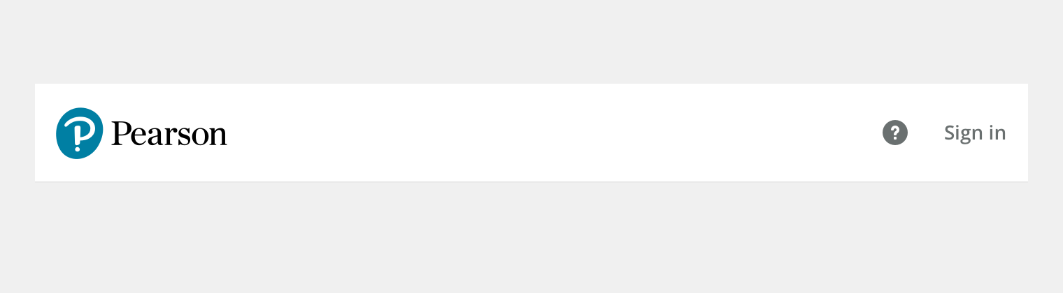 This is the simplest version of the header, just displaying the Pearson logo (with no link interaction), the help icon, and a Sign In link. The help icon is designed to trigger the Contextual Help component.