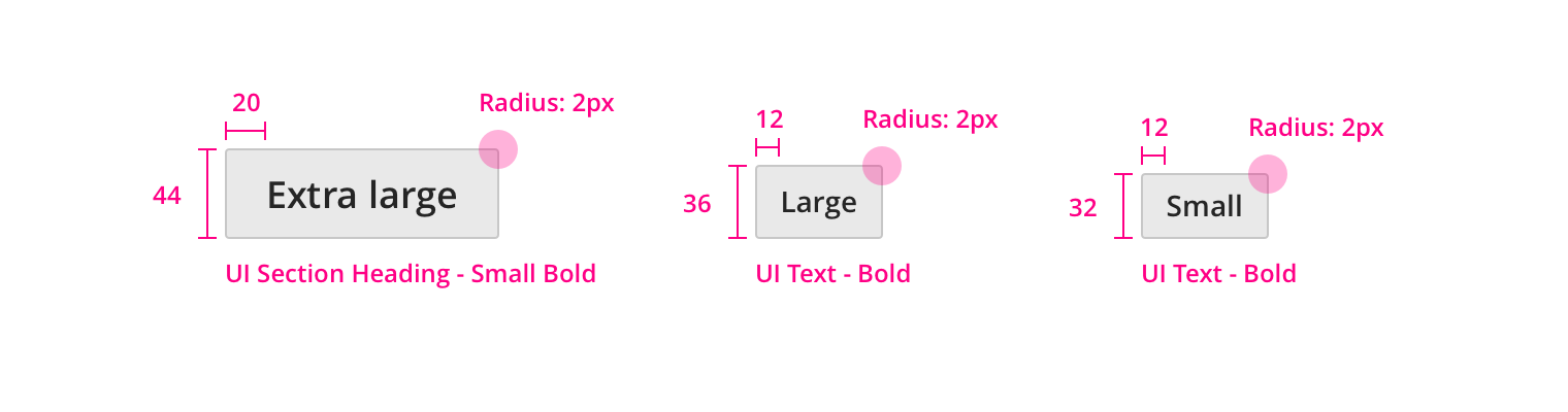 • Extra Large: Use this button for important actions that are the primary focus of a page, for example ‘Sign in’ or ‘Create account’.