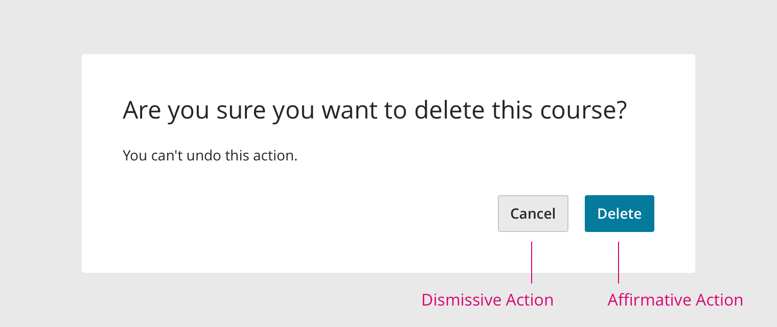 Examples: Next, Save, Create, View, Edit, Learn more, Study, Review, Delete, Cancel, and Close
