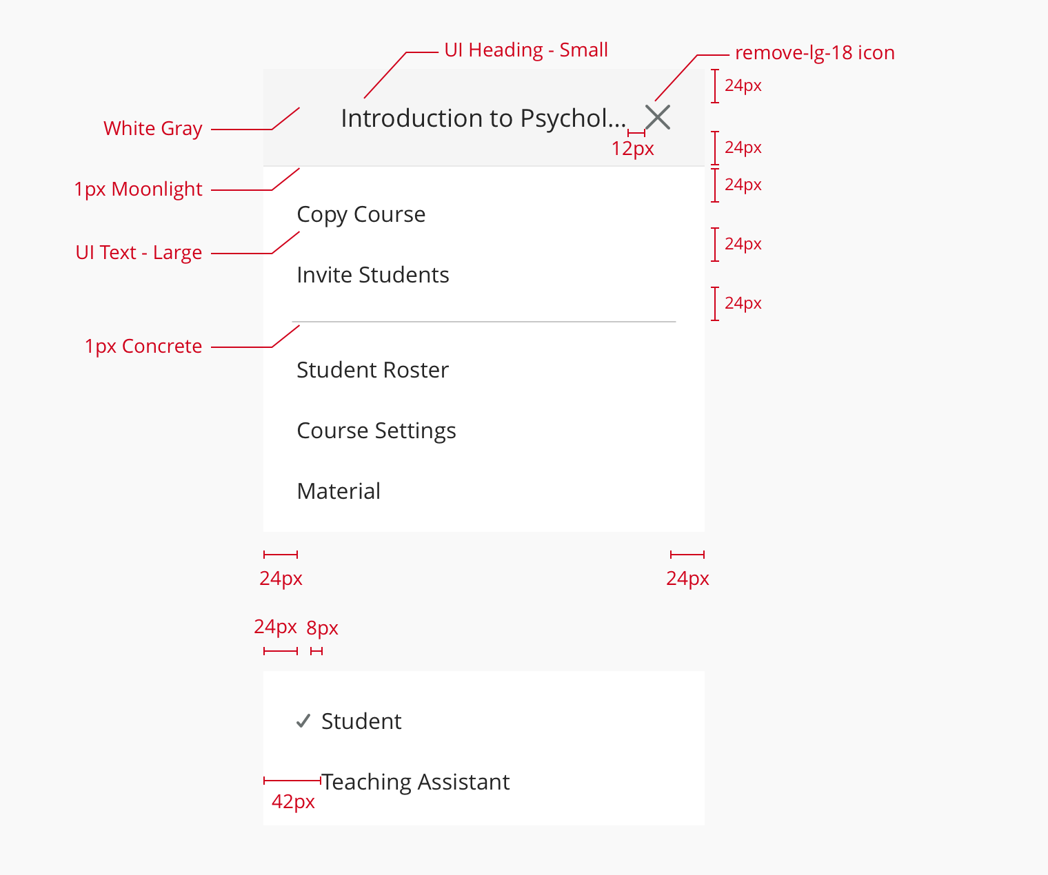 When a dropdown contains actions that edit some piece of data, you may use a checkmark to indicate the current state of the value being edited.