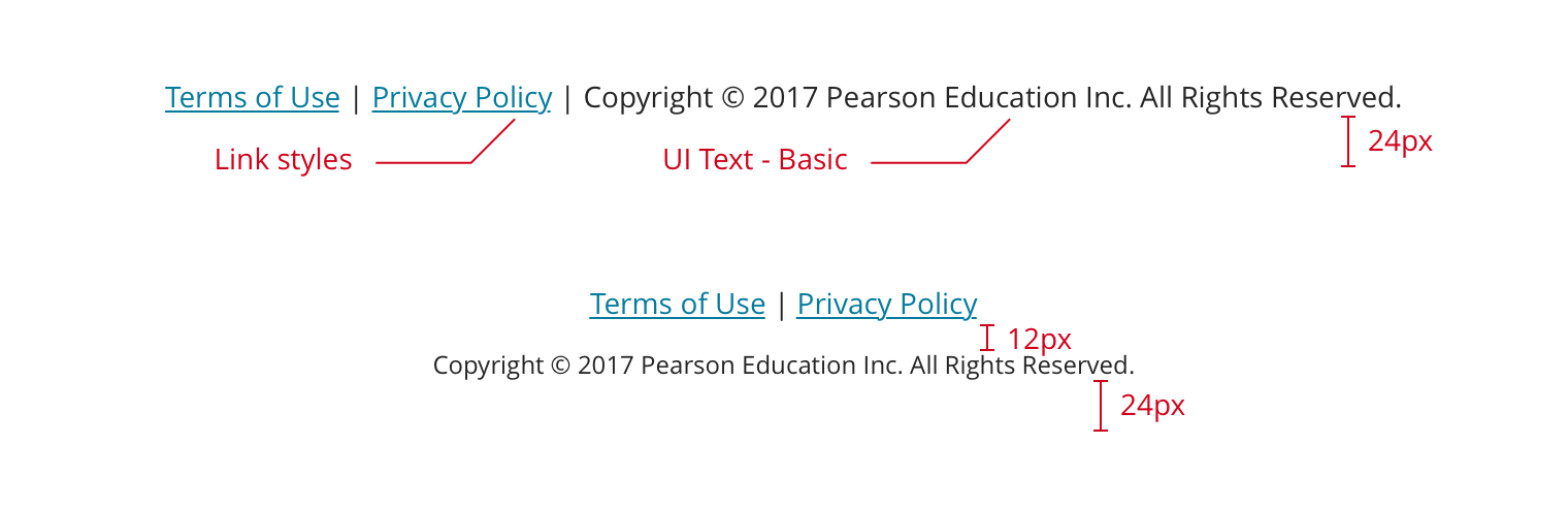 At small extra small breakpoints the copyright declaration moves to it’s own line.