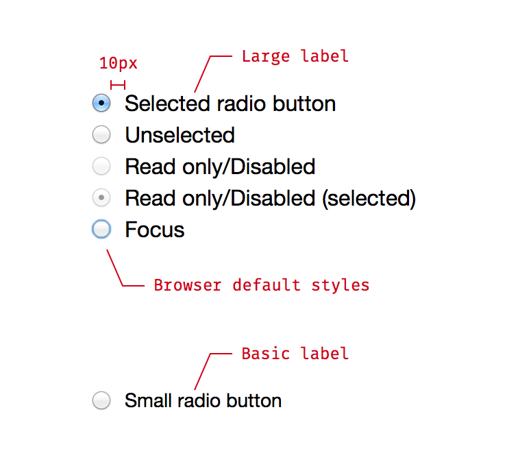 • Note this means there is no error state for the radio button itself, you must use explanatory text