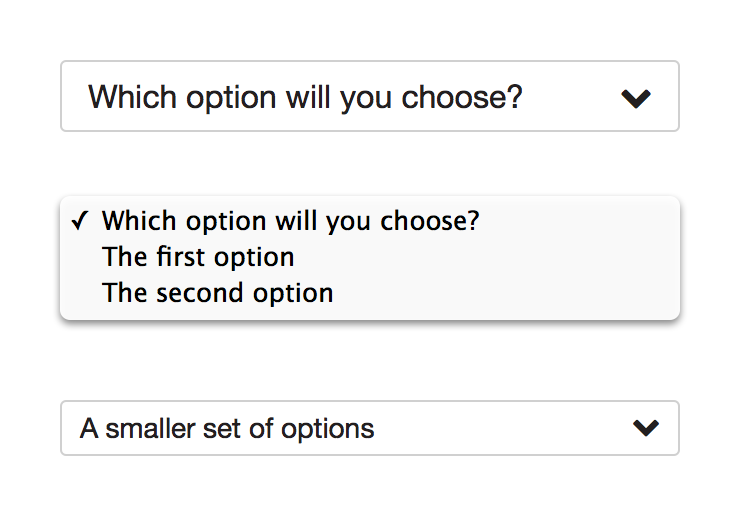 Closed and opened select (demonstrating the Mac OS X default browser style); example of the smaller select size.