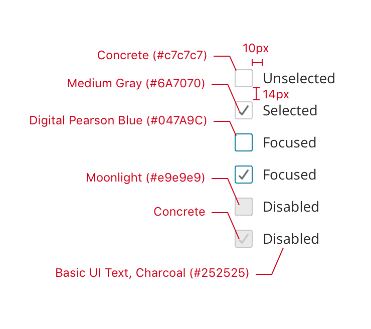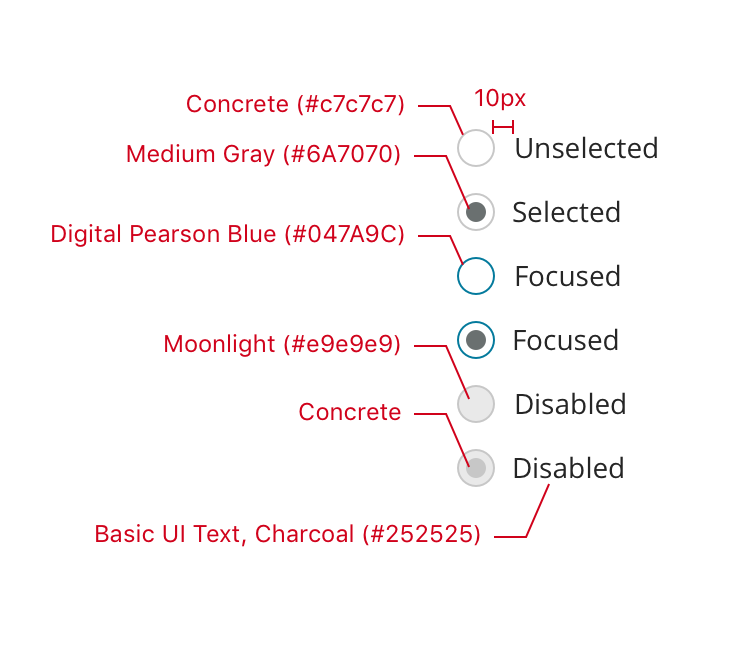 • Multiple options are separated by 14px of vertical space