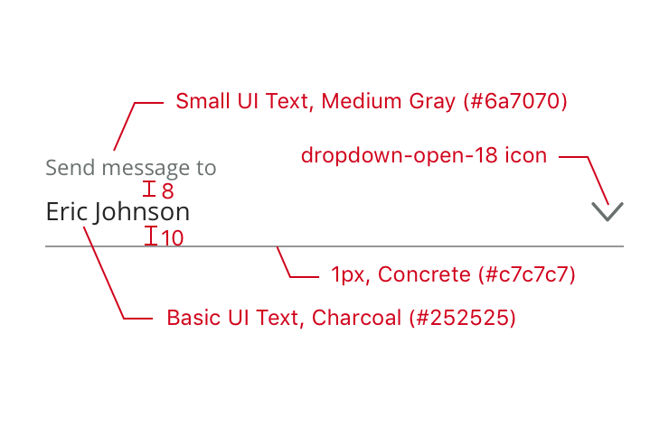 • Dropdown icon is the dropdown-open-18 icon