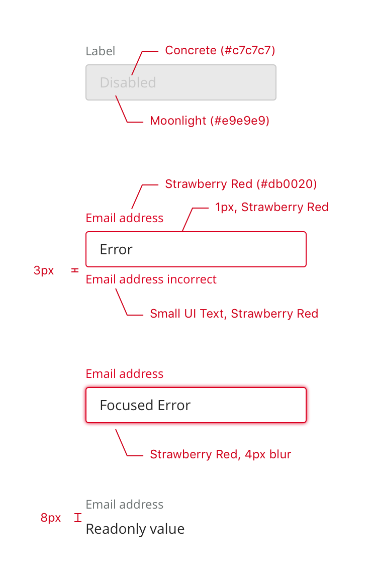• Follow the styles defined for the Basic Single Line input for each state