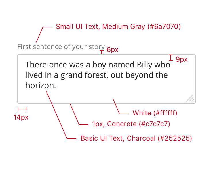 • Value has 14px horizontal padding, 9px vertical padding