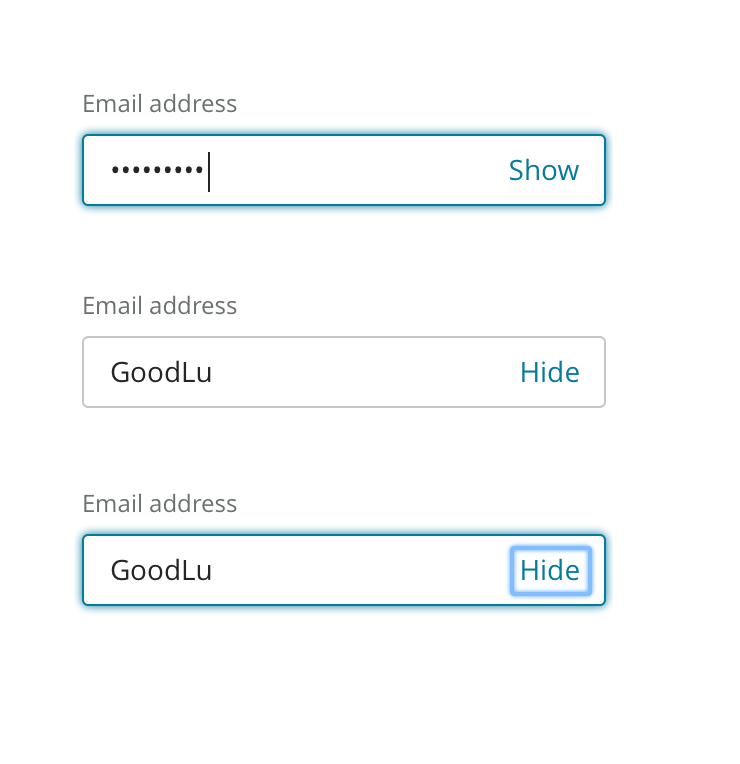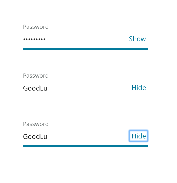 Note the show/hide control is slightly different than the standard link style with the underline appearing on hover/focus. This is to mesh with the fancy form style better.