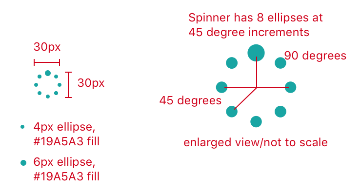 • Each dot is a 4px circle except for the larger dot which is 6px