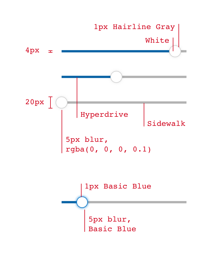 • Focused knob has 1px basic blue border and a 5px basic blue dropshadow