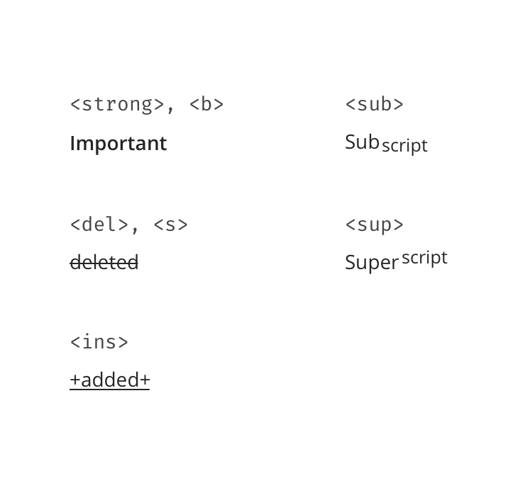 Some inline elements should be used only for semantic reasons and don’t effect the visual style. These include: