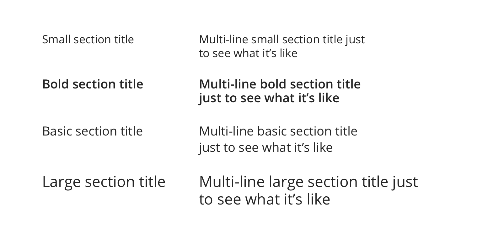 There are four different types of section title: Basic, Bold, Small, and Large.