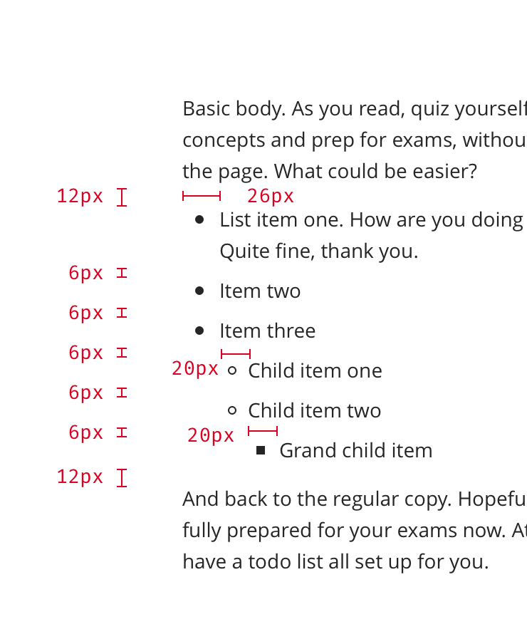 These lists should be used to communicate content within a copy block, not as UI elements.